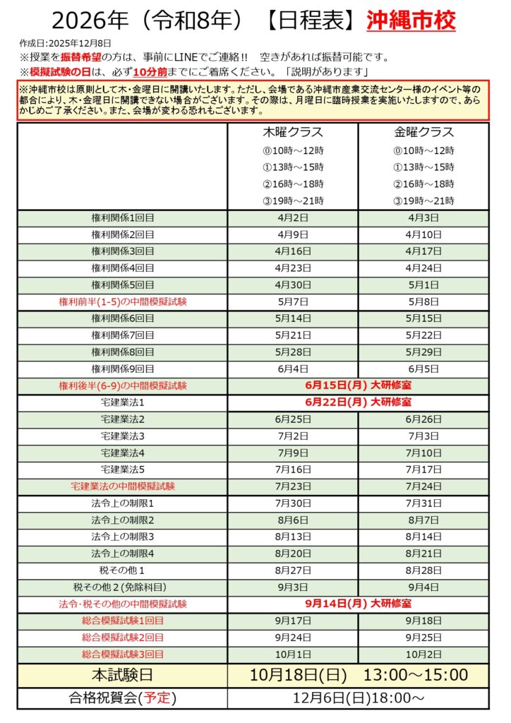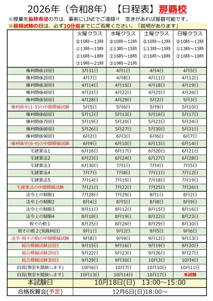 なお、振替ができるように週に6回の授業曜日を設定しているのは、県内では沖縄宅建スクールだけの特長です。