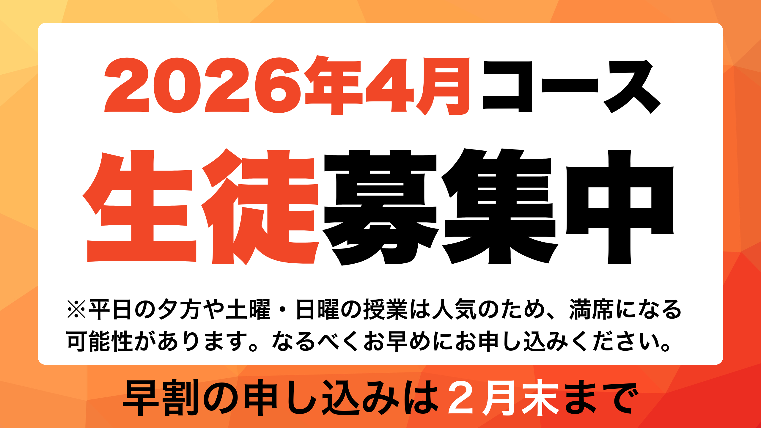 ※座席数に限りがございますので、受験を検討中の方は、お早めにお申し込みください。